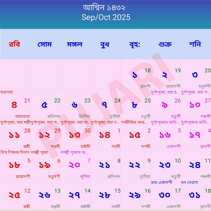 Current Bengali Calendar ১৪৩২